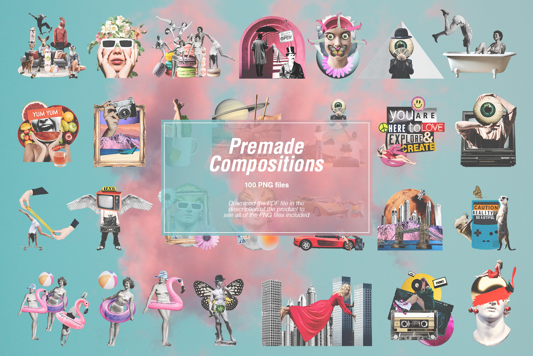 Each cutout is included in 3 versions for you to play with resulting in a total of 4200+ collage cutouts included.
