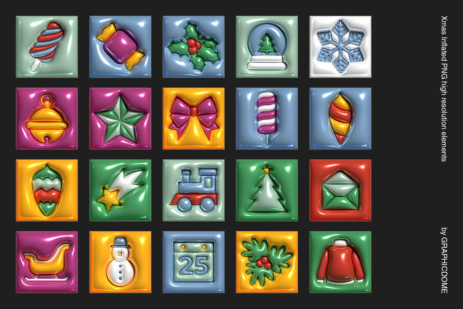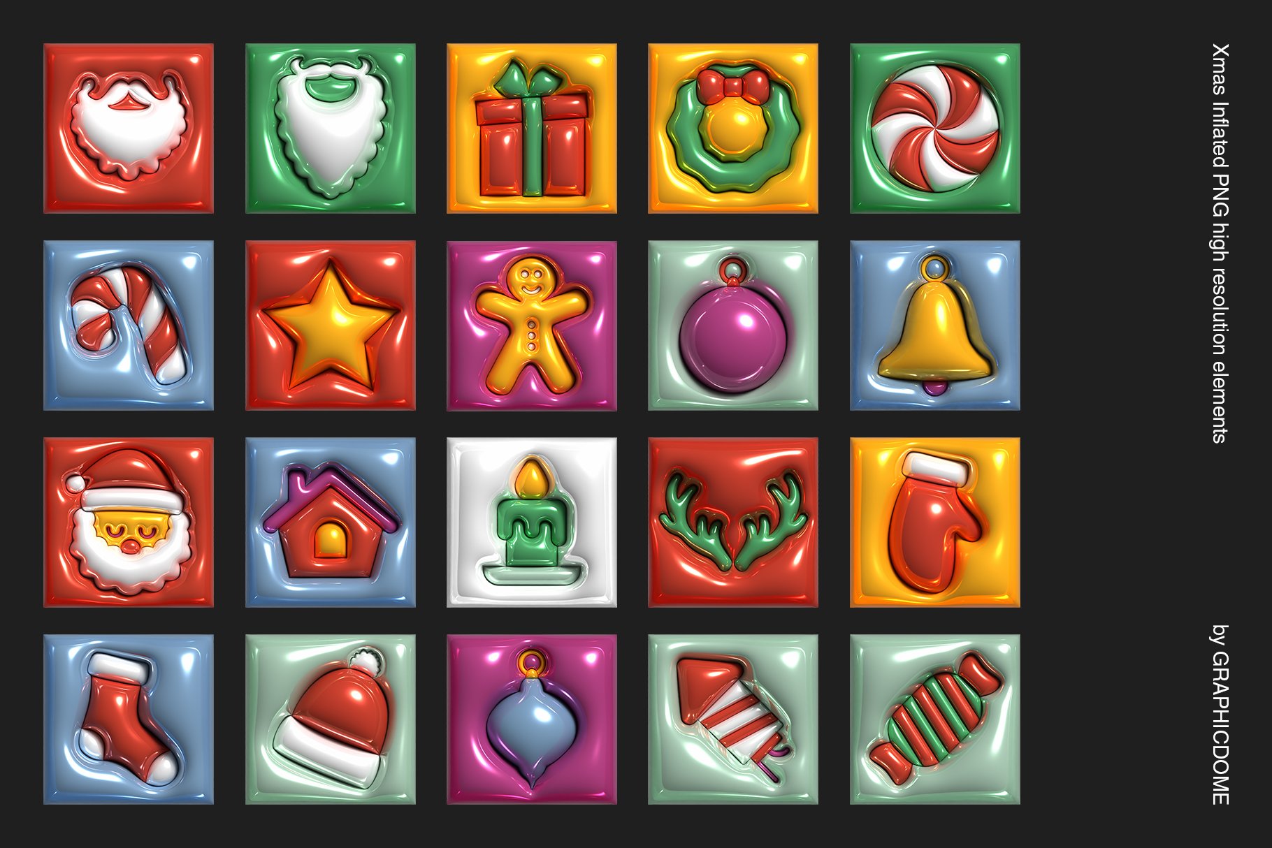 This digital design collection packs a festive punch with 140 high-res PNG elements. Think of everything you love about Christmas, now imagine it as adorable, inflated balloons. From A to Z and a bunch of holiday goodies in between, it's the perfect way to add a playful touch to your holiday projects. From prints to social media, let your creativity take flight with the Inflated Xmas Collection!
